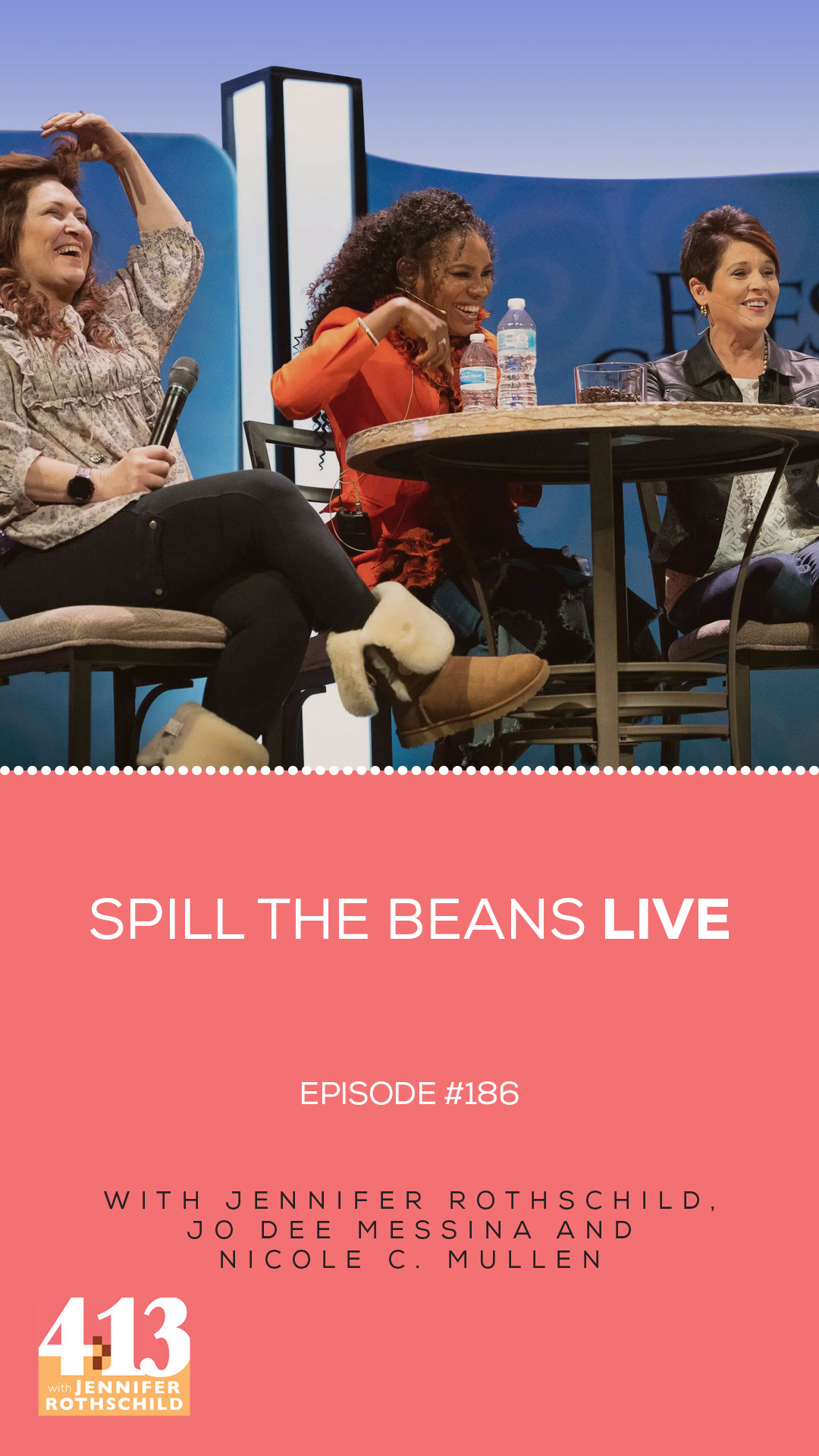 03_24_22_Pod_186_PinterestTemplate_Feb Published March 4, 2022 at 1080 × 1920 in Spill the Beans LIVE with Jo Dee Messina and Nicole C. Mullen at Fresh Grounded Faith Springfield, MO [Episode 186] ← Previous